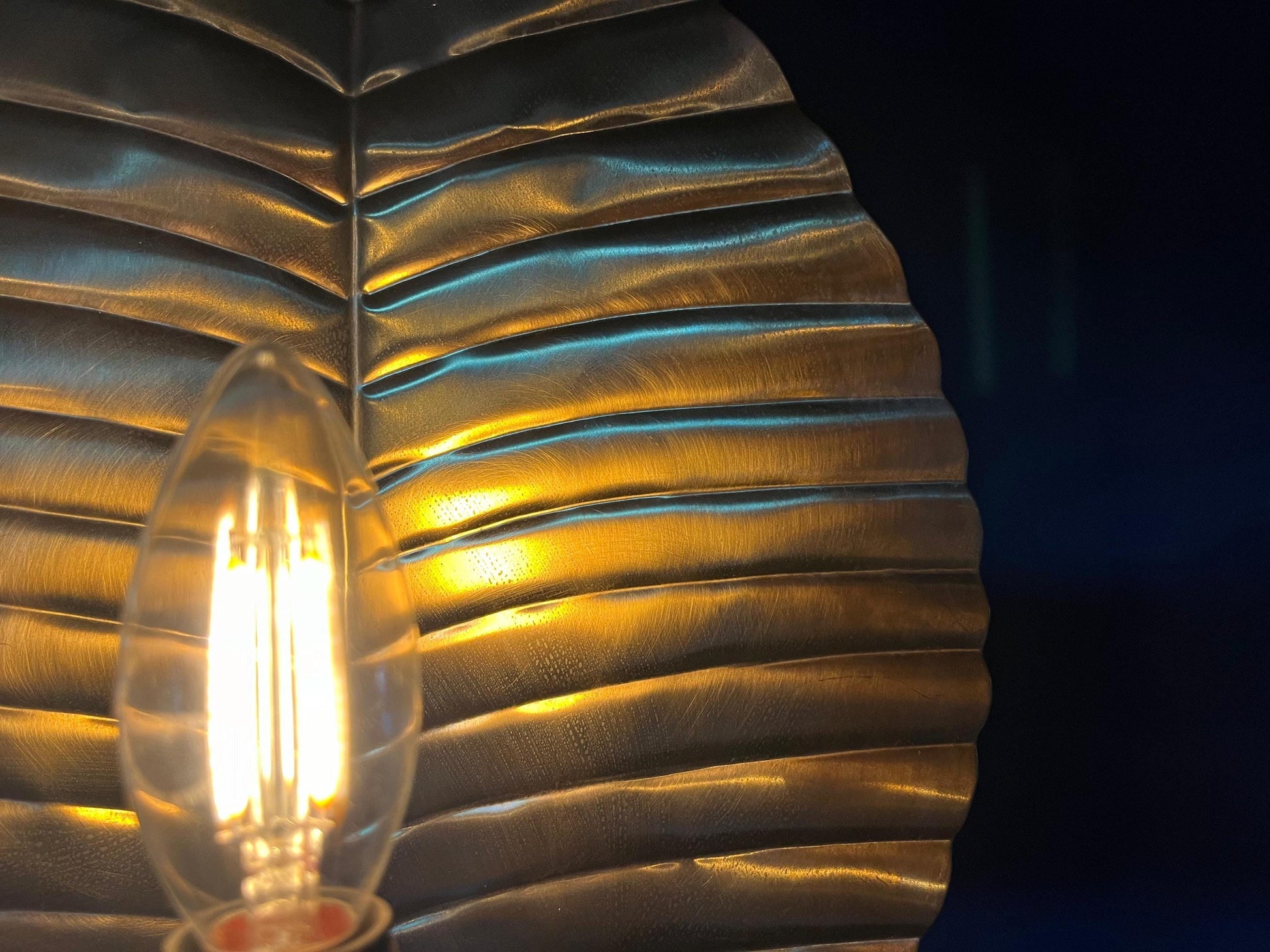 Crafted with meticulous attention to detail, each “vein” of the leaf catches and reflects light in the most enchanting way. The warm brass finish paired with the Edison-style bulb creates an amazing golden ambiance that’s both modern and organic. ✨