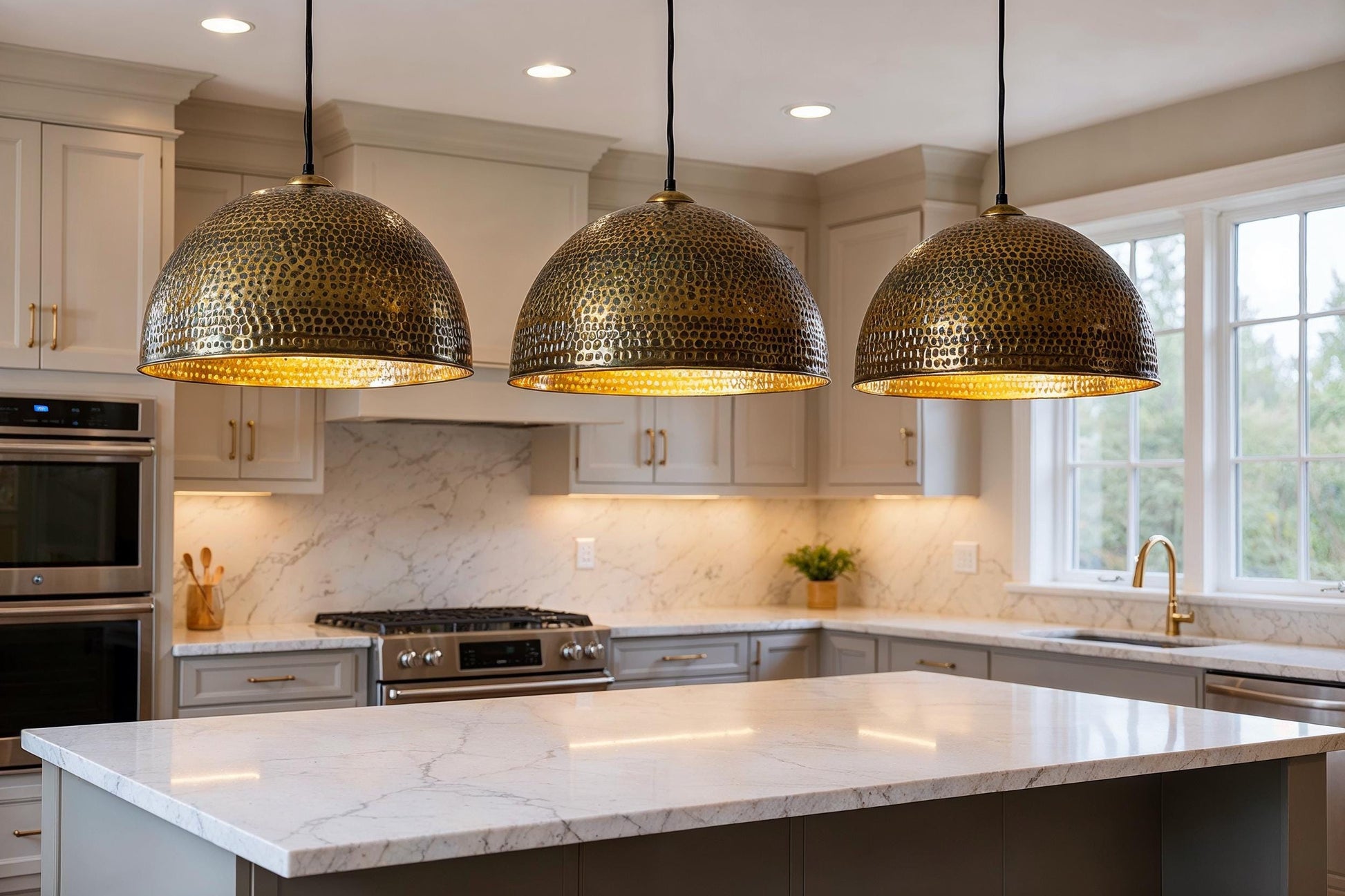 Handmade Hammered Brass Dome Pendant Light – Moroccan Copper Ceiling Lamp, Rustic Farmhouse Kitchen Island Lighting Fixture