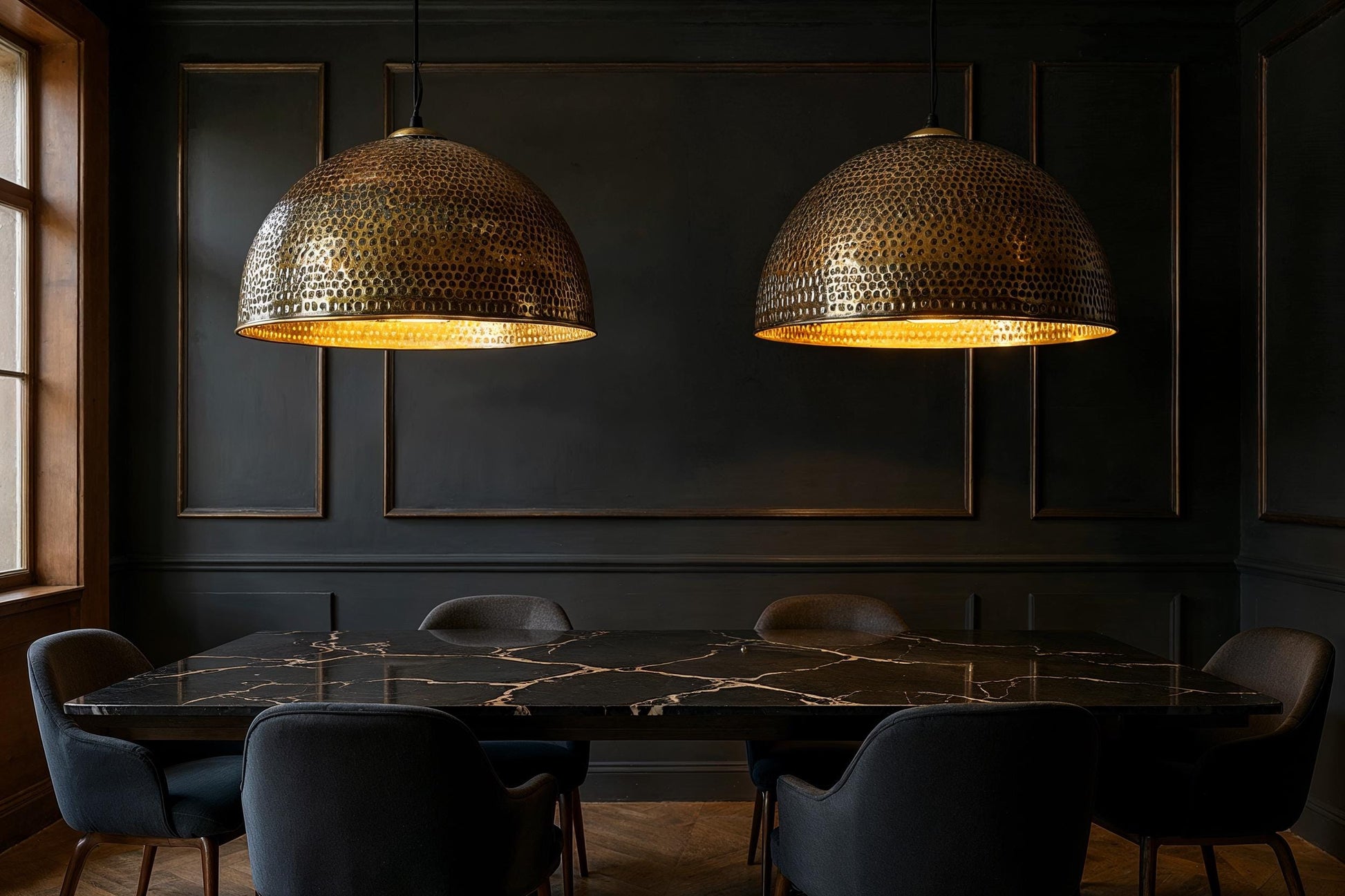Hand Hammered Brass Dome Pendant Light: Moroccan Farmhouse Lighting