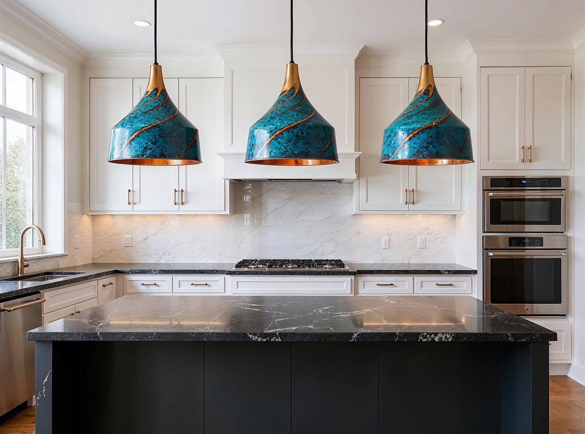 Handmade Moroccan Blue Patina Pendant Light – Artistic Brass Ceiling Lamp for Dining Room, Kitchen Island, or Living Room – Boho Modern Lighting