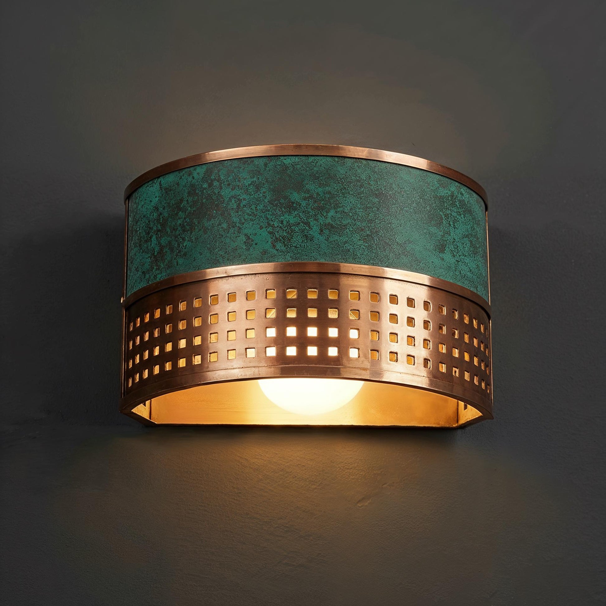 Handmade Copper Wall Sconce: Turquoise Patina Geometric Light
