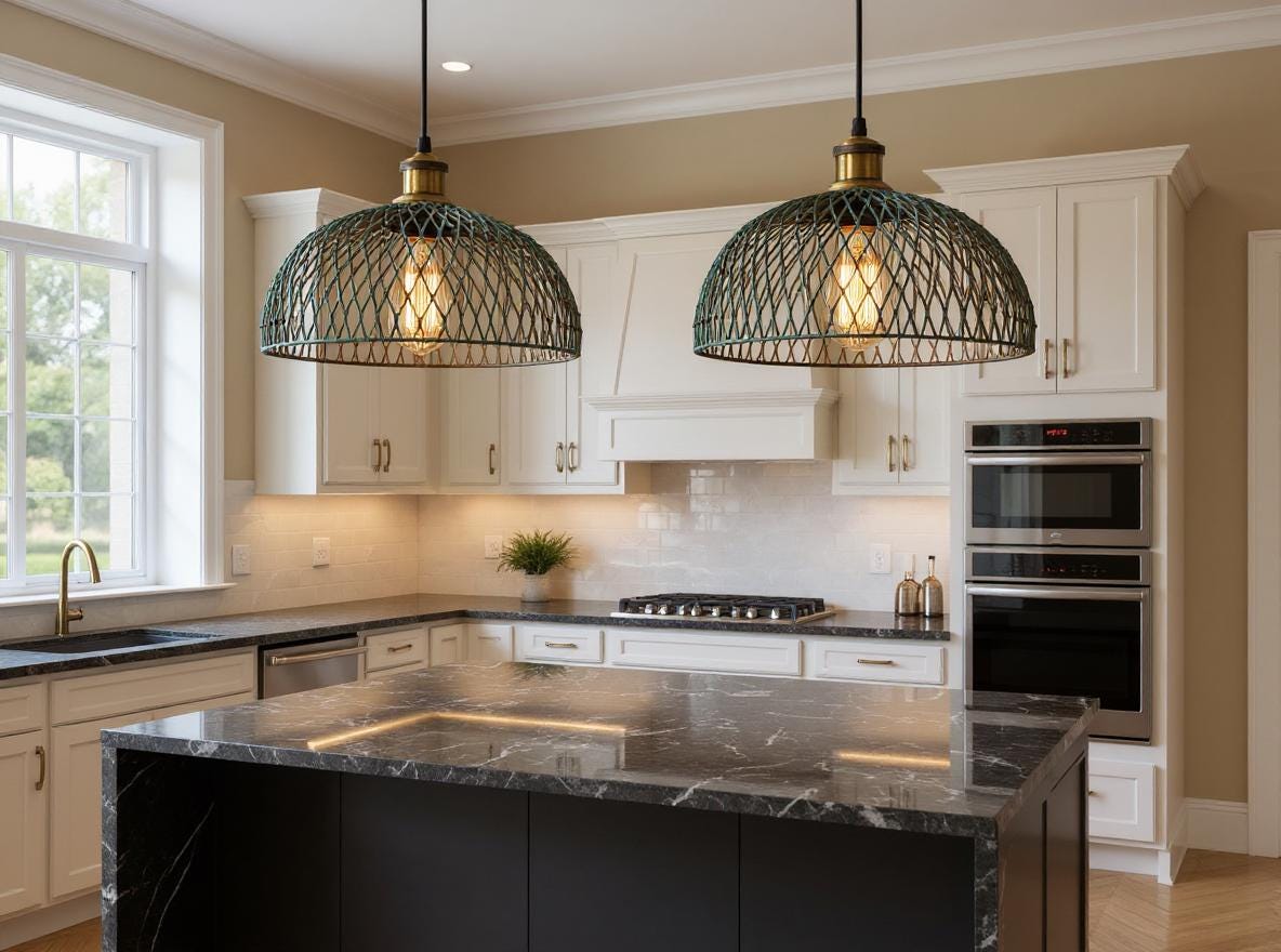 Handmade Brass Dome Pendant Light with Green Patina – Moroccan Ceiling Lamp for Dining Room, Kitchen Island or Entryway Lighting