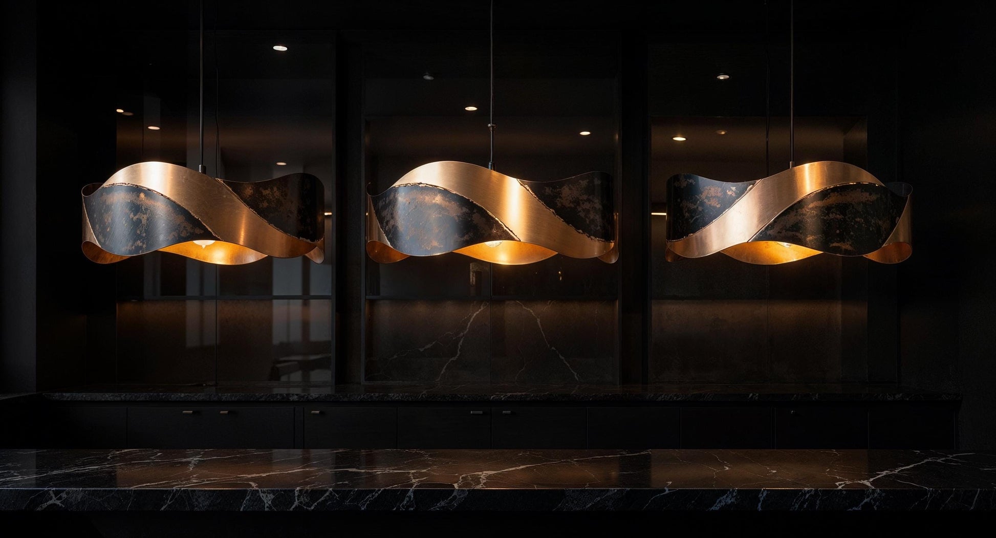Handmade Twisted Copper & Black Patina Pendant Light – Artistic Wave Ceiling Lamp for Kitchen Island, Dining Room & Modern Home Décor