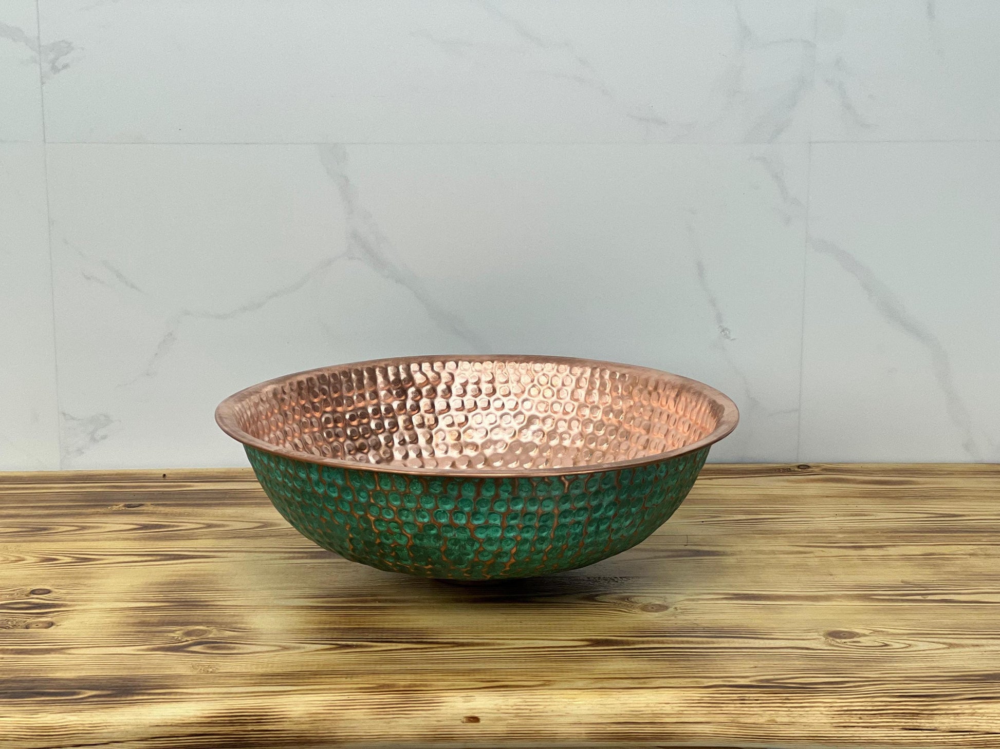 Handmade Hammered Copper Vessel Sink: Green Patina Moroccan Decor