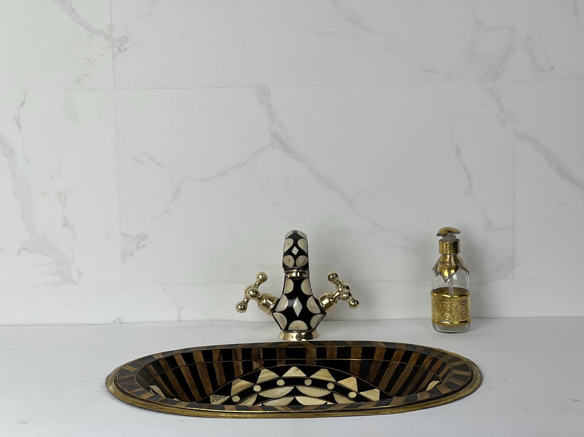 Luxury Resin Bathroom Sink with Faucet | Handmade Oval Vanity Basin | Moroccan Art Inlay | Unique Countertop Bathroom Set