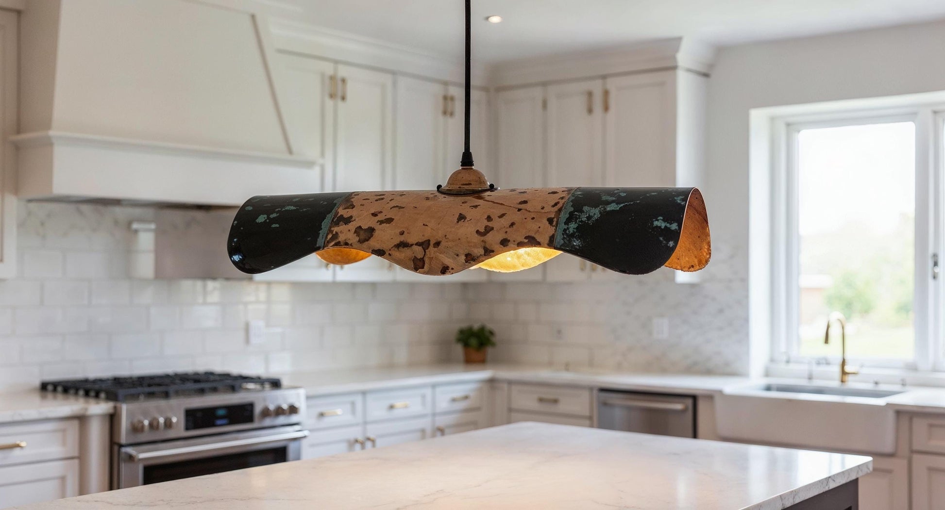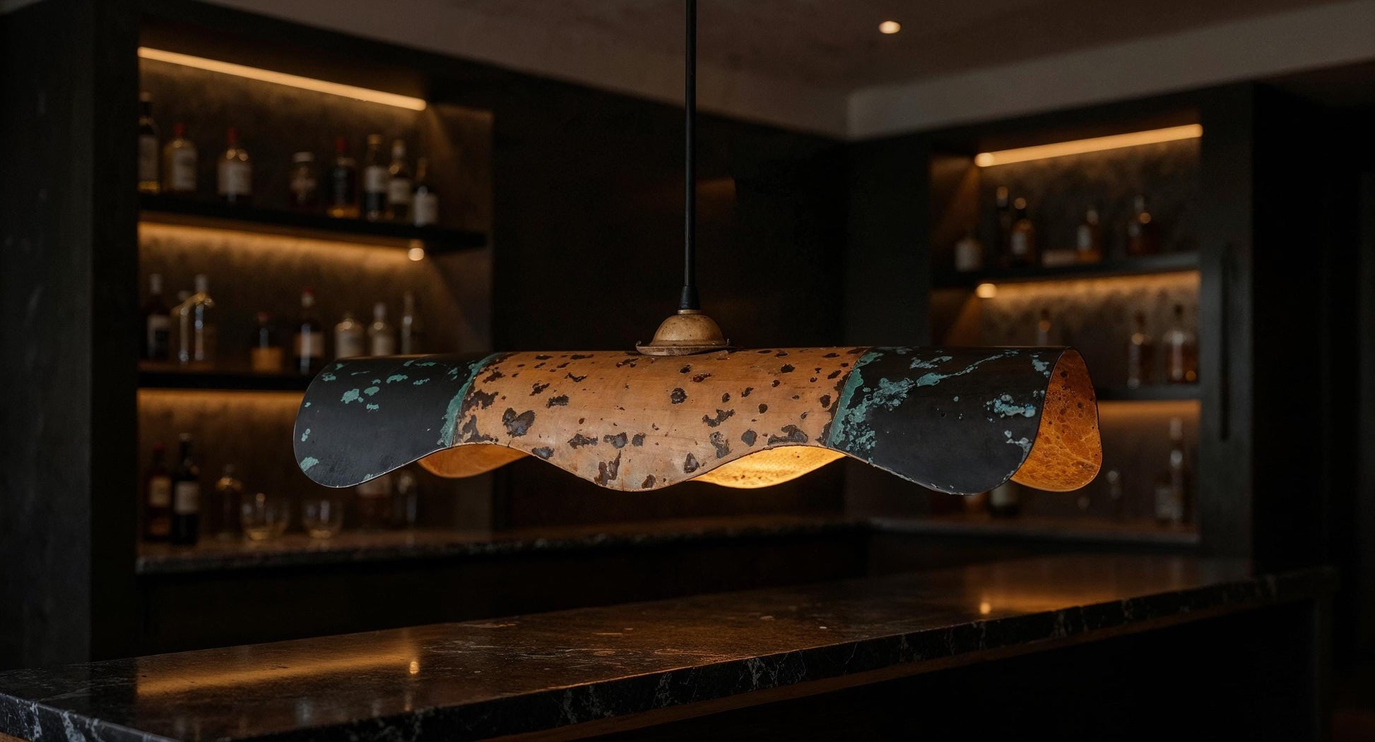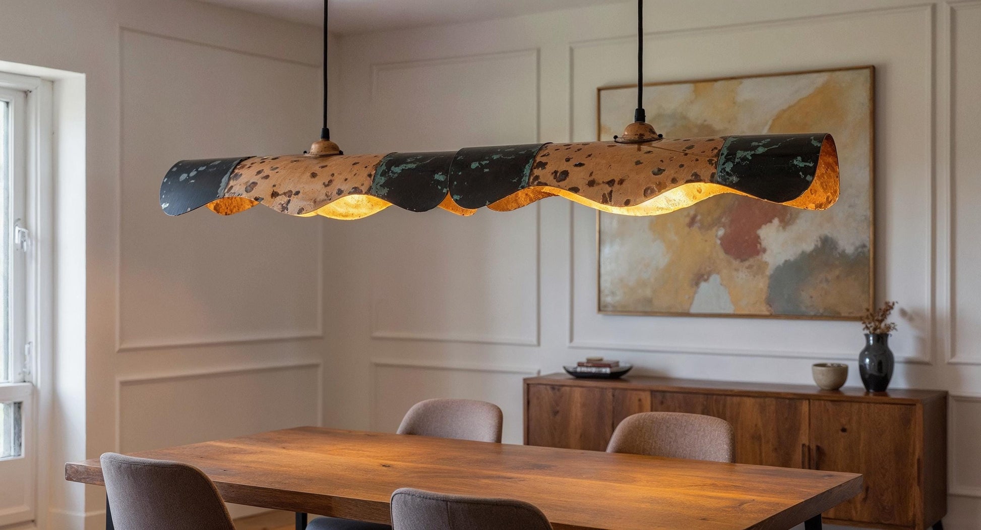 Handmade Wavy Copper & Black Patina Pendant Light – Modern Rustic Bar Lighting, Unique Artistic Ceiling Lamp for Dining Room and Kitchen