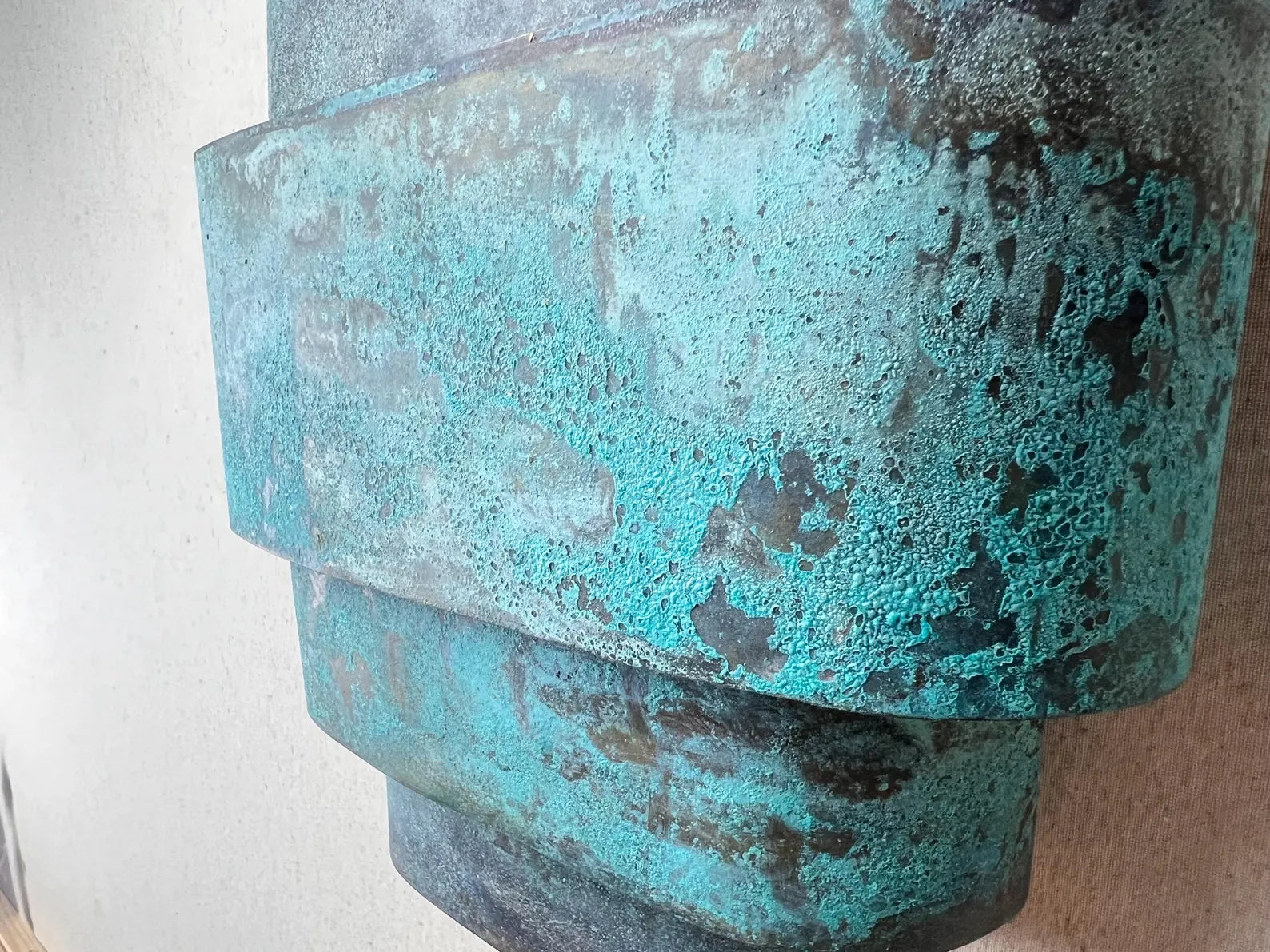 • Matériau : laiton massif avec patine naturelle bleu-vert