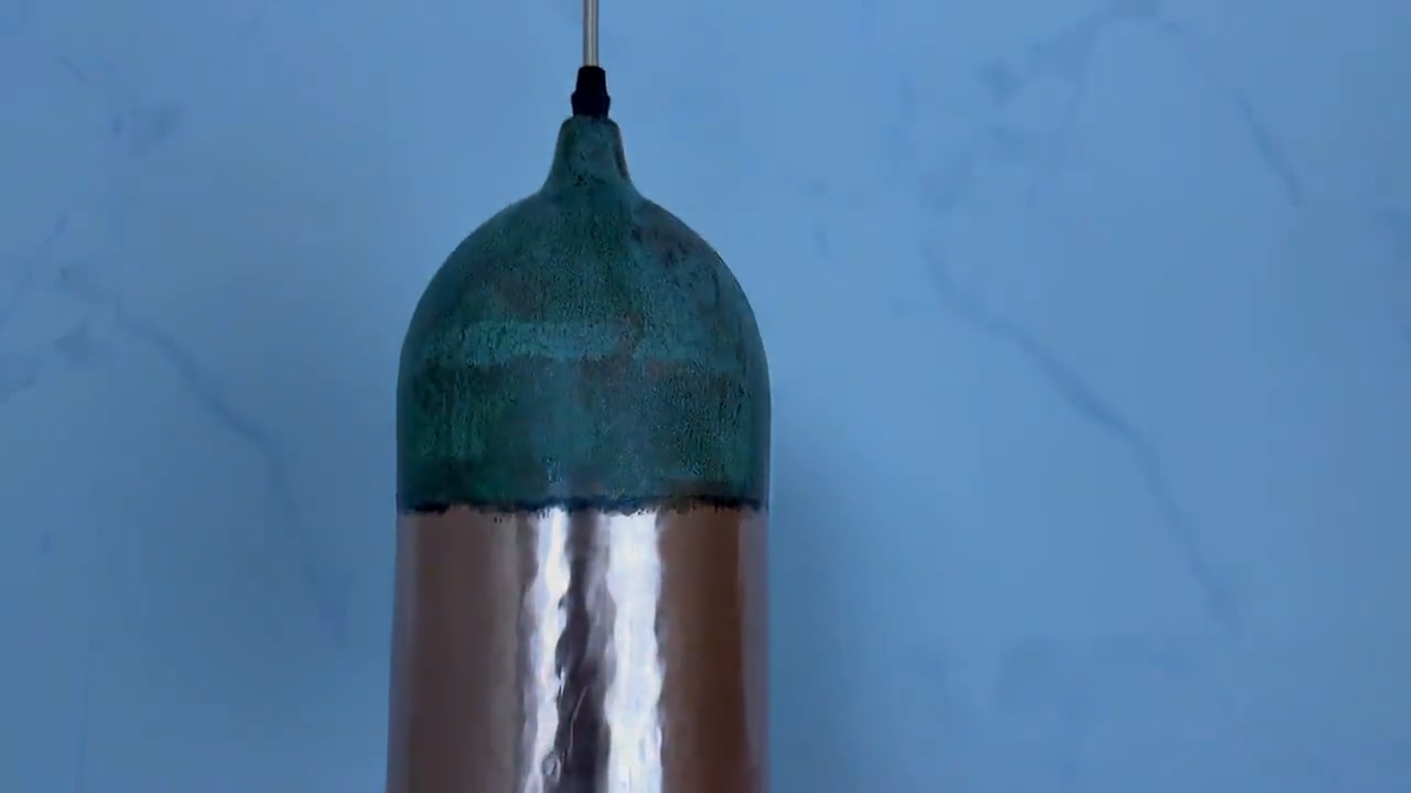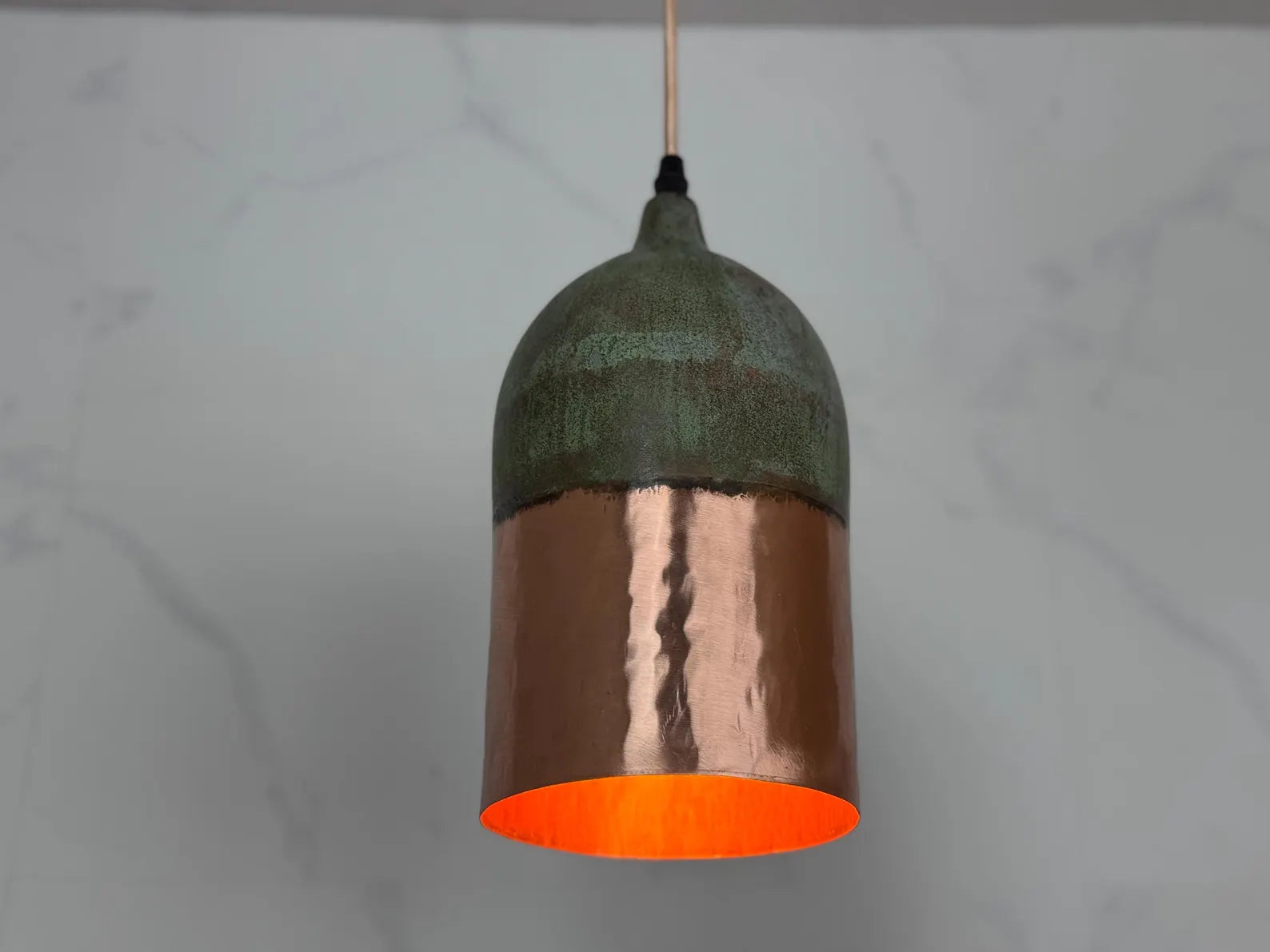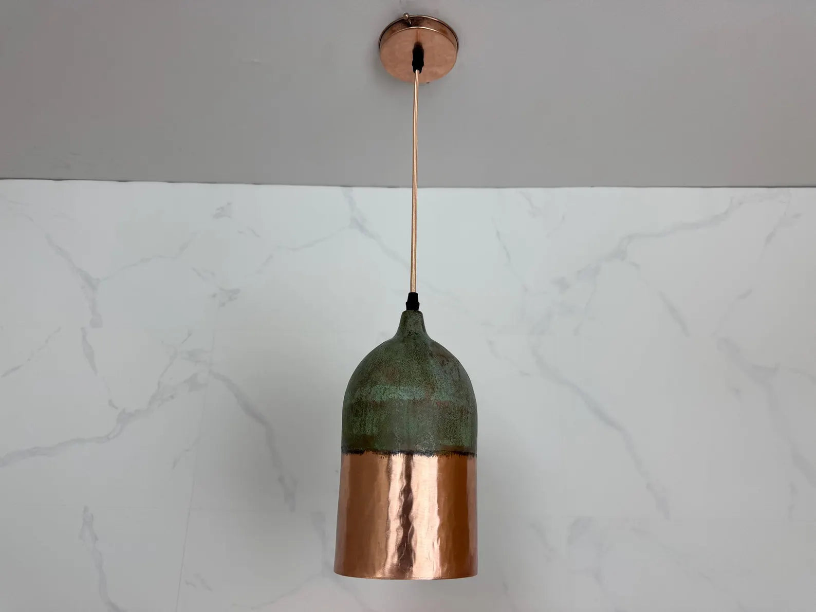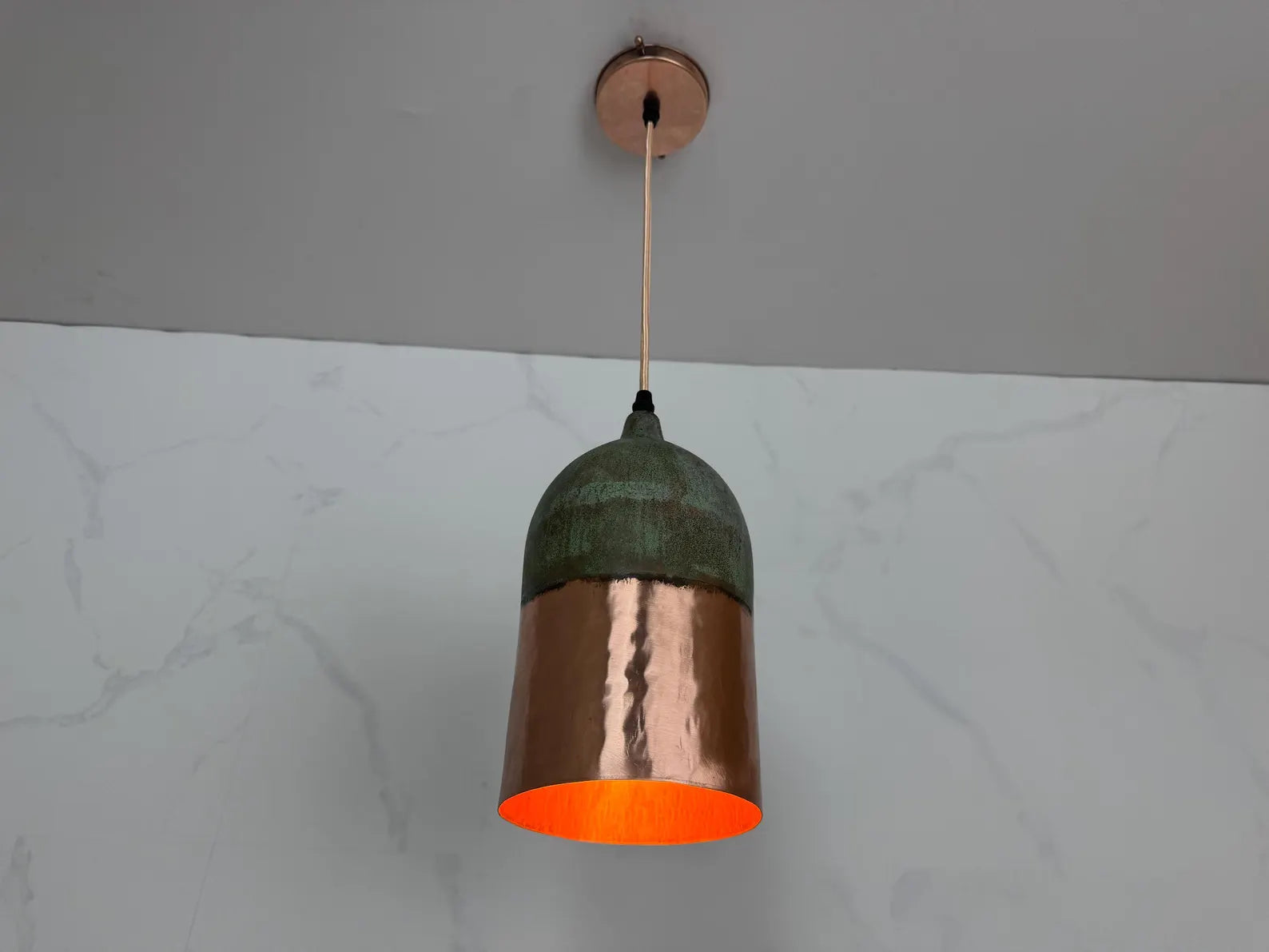 Authentique abat-jour cloche en cuivre fait main avec extérieur artisanal patiné vert